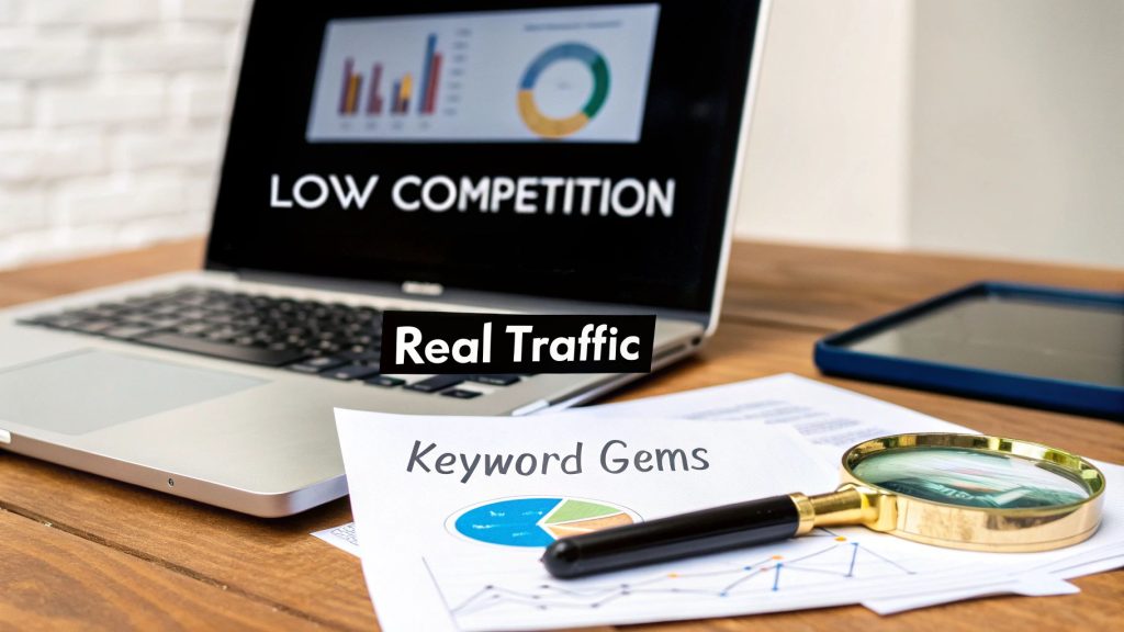 Low-competition keywords are the terms and phrases you can realistically rank for without going head-to-head with the internet's giants. For